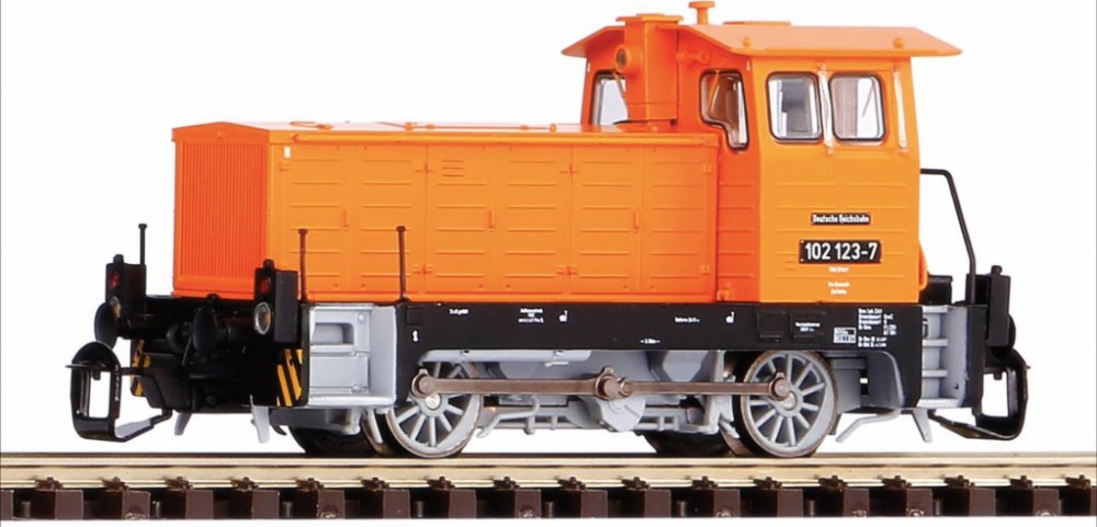 Model dieselové lokomotivy BR 102.1 v barvách a potisku DR. Zaujme detaily středové konzoly kabiny se světlem, detaily madel, zábradlí i malým hasícím přístrojem na zádi. Barevné provedení i potisk, zahrnující veškeré dekorativní prvky, jsou nejvyšší kvality. Model je osazen výkonným, setrvačníkem vybaveným motorem a moment je přenášen klikou i na druhou nápravu. Jízdní vlastnosti jej předurčují k použití s libovolným typem vlakových souprav. Bílé/červené LED osvětlení se mění v závislosti na směru jízdy a osvětlena je rovněž kabina strojvedoucího. Hlavní vlastnosti: dvojice nápravmotor se setrvačníkemčtveřice bandážovaných hnacích kolsvětla s přepínáním barvy dle směru jízdyosvětlení kabiny strojvedoucíhorozhraní Next18 dle NEM 662šachta dle NEM 358 s kinematikou krátkého spřáhla Dokumentace: Návod k obsluze a seznam náhradních dílů modelu č. 47503 (DE, EN, F, CZ)