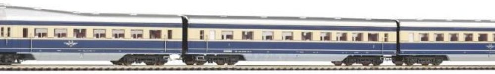 Piko Dieselový vlak Rh 5045 BBÖ Blauer Blitz III - 52070 Model dieselového vlaku Rh 5045 „Modrý Blesk“ železniční společnosti ÖBB, éra III. Skládá se z jednoho řídícího a dvou osobních vozů, na všech jsou loga ÖBB. Rozhraní PluX22. Směrová světla bílá/červená, 2 trakční pneumatiky. Obsahuje přípojku pro PI52070. Německá firma PIKO se zabývá výrobou modelů lokomotiv, vagónu, start setů, kolejiva a ...