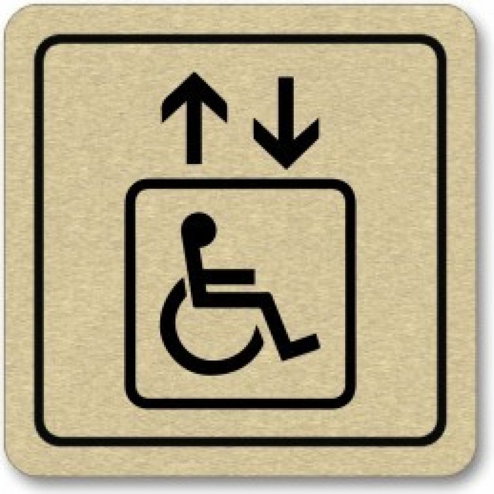 Piktogram Výtah pro invalidy je zhotoven sublimačním potiskem eloxovaného hliníku. Piktogram o rozměru 80x80mm o síle 0,8 mm.