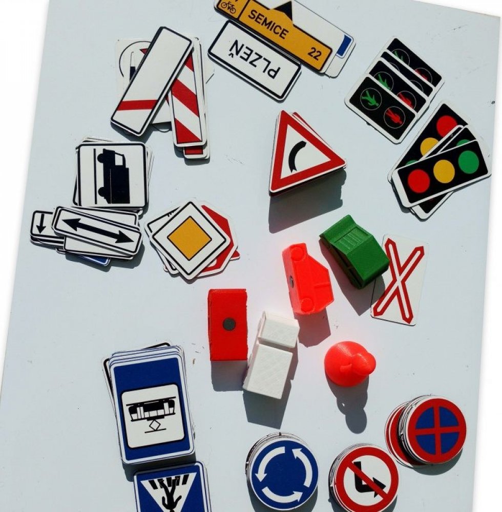 Hra obsahuje 143 ks magnetek dopravních značek. Jedná se o výběr častých značek, především o výstražné značky, zákazové značky, příkazové dopr. značky, informativní dopr...