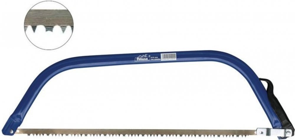Oblouková pila PILANA je vhodná pro řezání suchého i vlhkého dřeva. Jednoduché a současně pevné upevnění pilového listu do rámu umožňuje jeho snadnou a rychlou výměnu. Pilový list je vyroben z kvalitní oceli s kalenými zuby. Rozměr: 800 mm.
