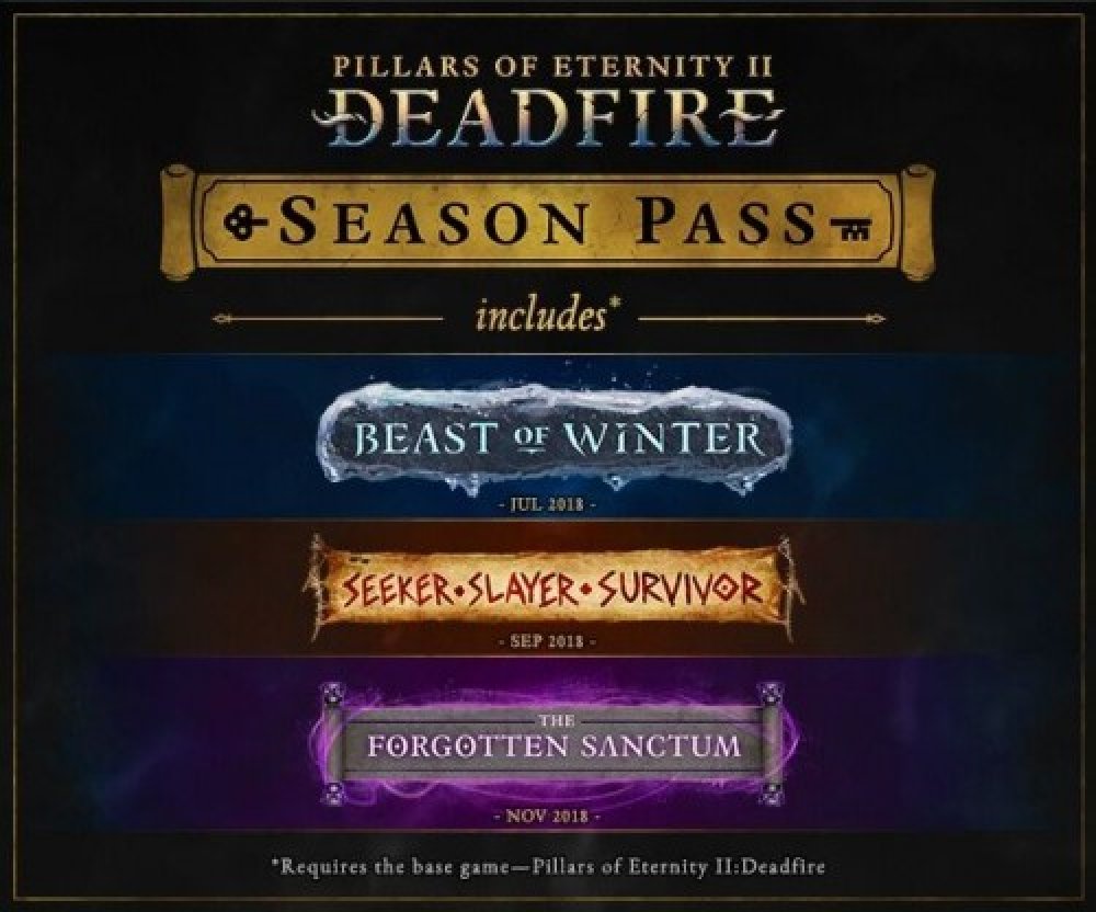 Tento obsah ke hraní vyžaduje vlastnictví základní hry Pillars of Eternity II: Deadfire ve službě Steam. Obsah ke stažení, který rozšiřuje základní hru DLC 1 - 3. Obohacuje svět Pillars of Eternity II: Deadfire o nová místa, dobrodružství a předměty. Obsahuje: BEAST OF WINTER SEEKER, SLAYER, SURVIVOR THE FORGOTTEN SANCTUM O hře Pillars of Eternity II: Deadfire: Pusťte se do pronásledování nevyzpytatelného boha napříč mořem i souší v pokračování cenami ověnčeného RPG Pillars of Eternity. Staňte se kapitánem lodi na nebezpečné objevitelské výpravě napříč rozlehlým a dosud neobjeveným souostrovím jménem Deadfire. Podvolte si okolní svět a prozkoumávejte hlubiny nekonečných možností, včetně detailních úprav postavy, naprosté svobody průzkumu a dalších významných voleb. Klíčové prvky: Ponořte se do intenzivního RPG zážitku pro jednoho hráče: Deadfire, obohacený o nejmodernější technologie a herní prvky, staví na základě klasické D&D hratelnosti s výrazně vylepšenou grafikou, hlubšími herními mechanikami a zcela novém dobrodružství, kde na Vašich rozhodnutích skutečně záleží. Objevte nový region Deadfire: Určete si svůj vlastní kurs cesty a prozkoumejte bohaté a exotické souostroví. Objevujte nová místa, interaguj s obyvateli a plňte úkoly. Vytvořte si svou družinu a upravujte jednotlivé společníky: Vybírejte ze 7 rozdílných společníků, které se k Vám přidají při plnění úkolů. Přiřaďte každému z nich libovolnou třídu a vybrané schopnosti. Staňte se svědky jejich osobních vztahů a interakcí, jejiž rozvoj je umožněn díky novému systému společníků. Velte své lodi při cestě po mořích: Vaše loď představuje mnohem více, než jen obyčejné plavidlo určené k průzkumu. Vylepšujte si loď i posádku a zvolte si, jaké atributy chcete vylepšit, abyste přečkali mnohá nebezpečná setkání, která Vás čekají.