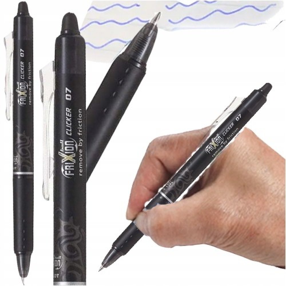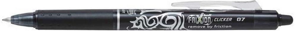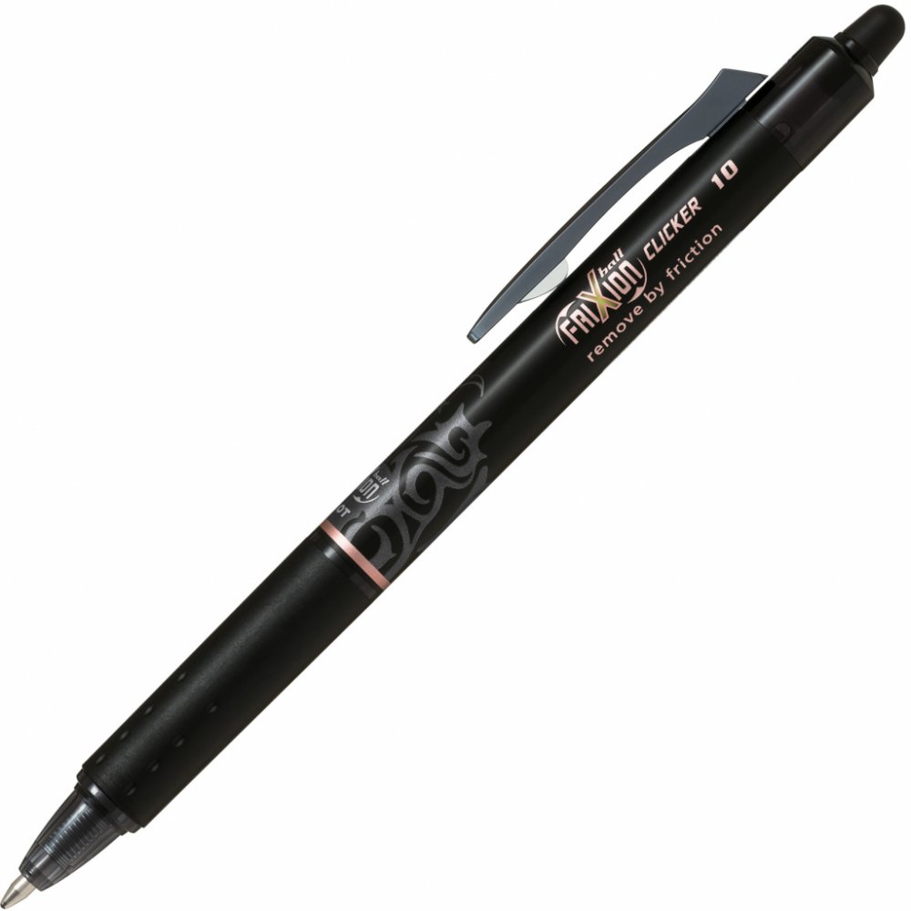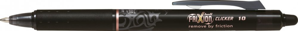 Napiš, vymaž, přepiš! Už NIKDY žádné škrtance, pokud používáte FriXion Clicker, gumovací pero od Pilota!Nejprodávanější roller Pilot FriXion Clicker nyní přichází v elegantním designu: s tmavým tělem s potiskem v trendy rosegold barvě. Pište hladce se širokým hrotem, vygumujte pomocí gumy FriXion a okamžitě přepište. Gumovací roller společnosti Pilot vám umožňuje čistě psát, snadno napsaný text vygumovat a opět přepsat - to vše se stejným perem. Jednoduše vygumujte chyby pomocí gumy a sledujte, jak inkoust zmizí. Vypadá to jako kouzlo! Unikátní gelový inkoust reaguje na teplo generované třením gumy o papír a umožňuje vám přepsat vaši chybu okamžitě stejným perem.Díky patentovanému termo citlivému inkoustu má PILOT revoluční psaní s tradicí vymazatelné pero FriXion Clicker. Je k dispozici v různých odstínech a nabízí FriXion Clicker pro každého!Ušetřete peníze a buďte ohleduplní k životnímu prostředí tím, že místo koupě nového pera FriXion Clicker vyměníte náplň!Hrot o průměru 1,0 mm nabízí šířku stopy 0,5 mm.Kvůli gumovacímu inkoustu nedoporučujeme používat FriXionl Clicker pro podpisy např. na smlouvy, právní dokumenty, různé testy či maturitní písemky nebo jiné dokumenty, u nichž je požadována trvalá povaha.