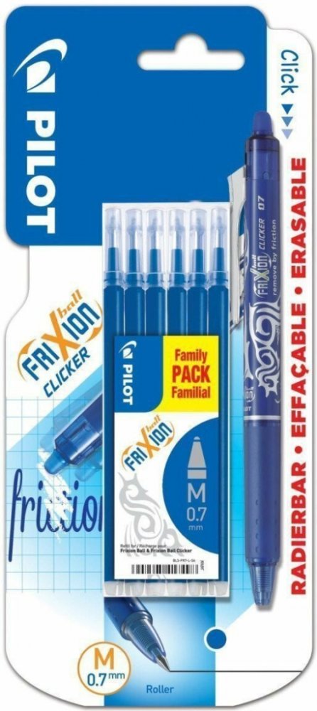 Pilot FriXion Clicker 0,7 + 6ks modrá náplň