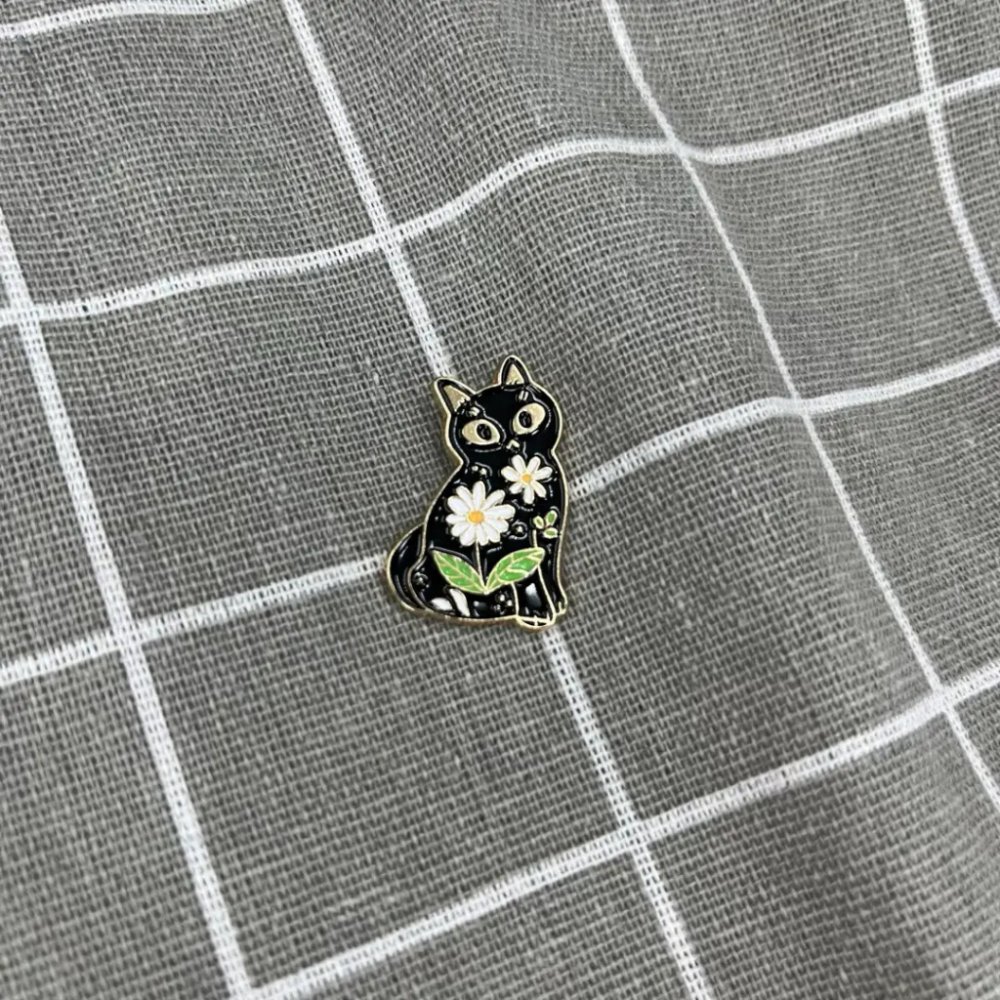 Pinarna Černá kočička s bílými květinami