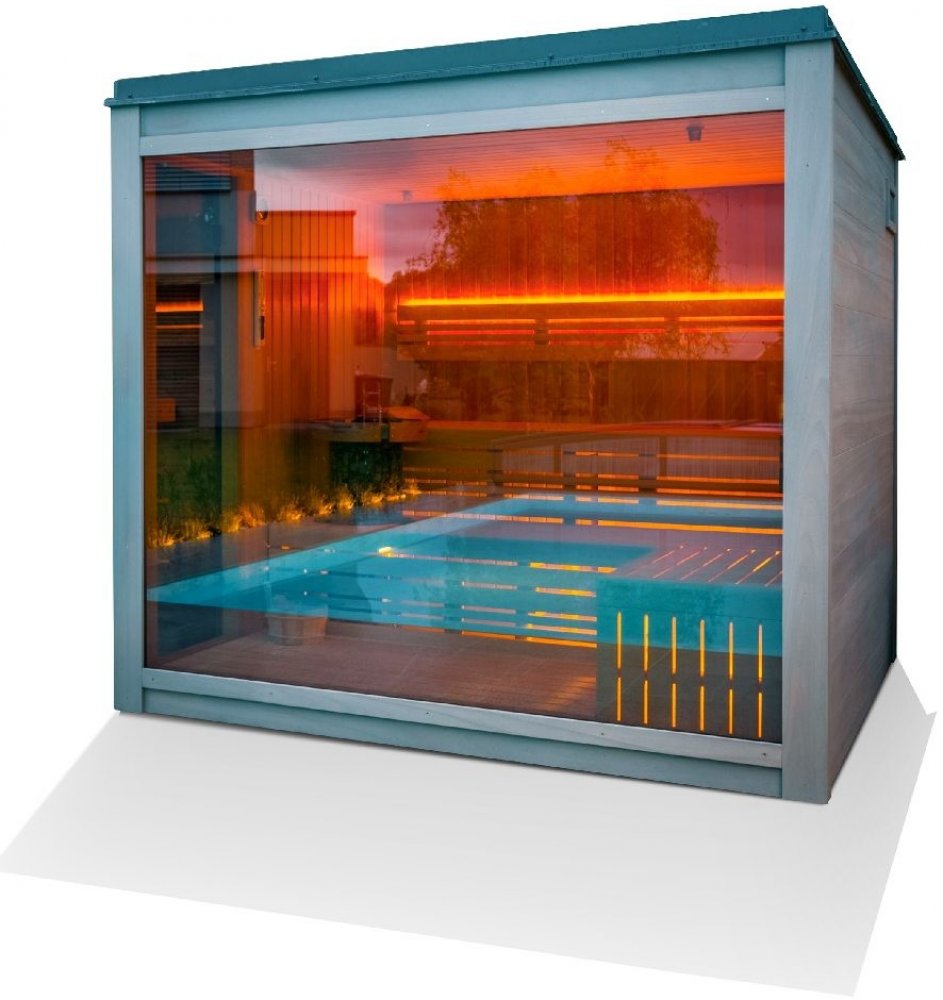 skla. V sauně je použito špičkové vybavení a