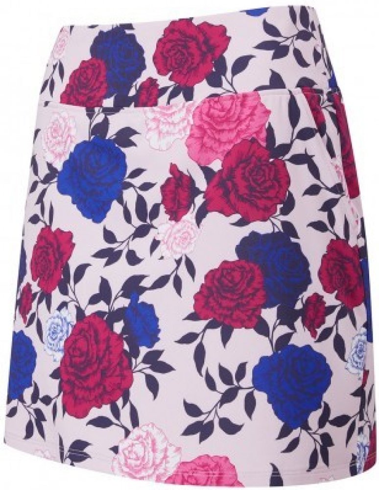 Ping dámská sukně s květinovým vzorem poskytne opravdu stylový vzhled Lze nosit jako komplet se stejnojmenným polem Rose garden 2 přední kapsy 95% Polyester, 5% Spandex Neomezená volnost pohybu díky strečovému materiálu Délka: 46cm