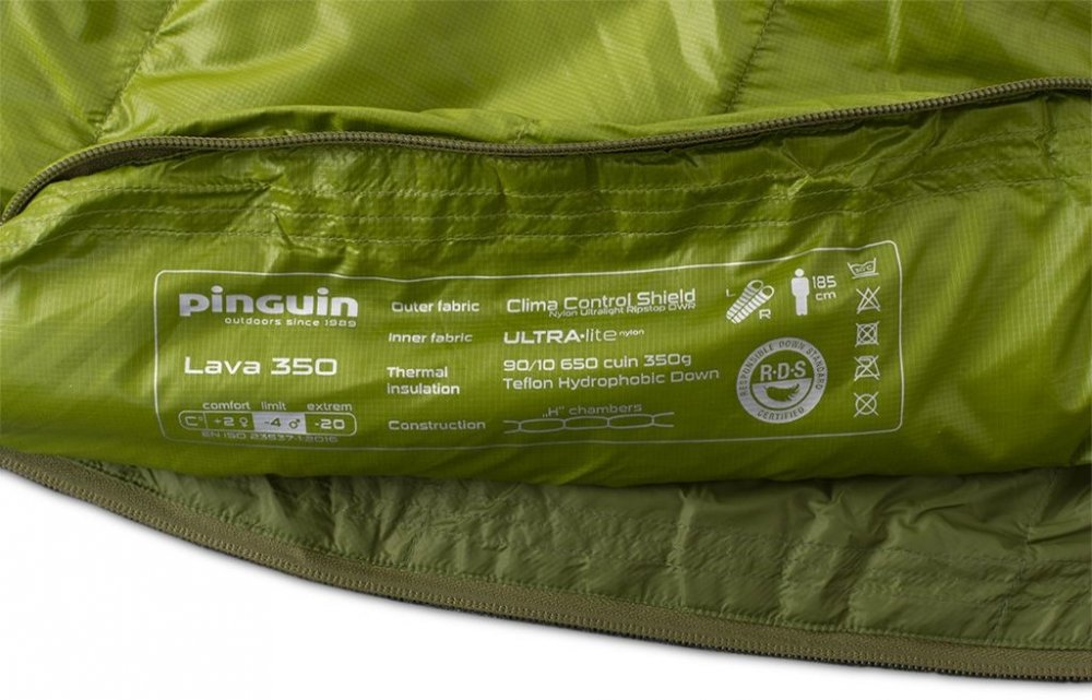 - Kachní peří o plnivosti 650 Cuin v poměru 90/10 se postará o výborný loft a tím pádem skvělou sbalitelnost při zachování výborného tepelného komfortu až do -4°C.
