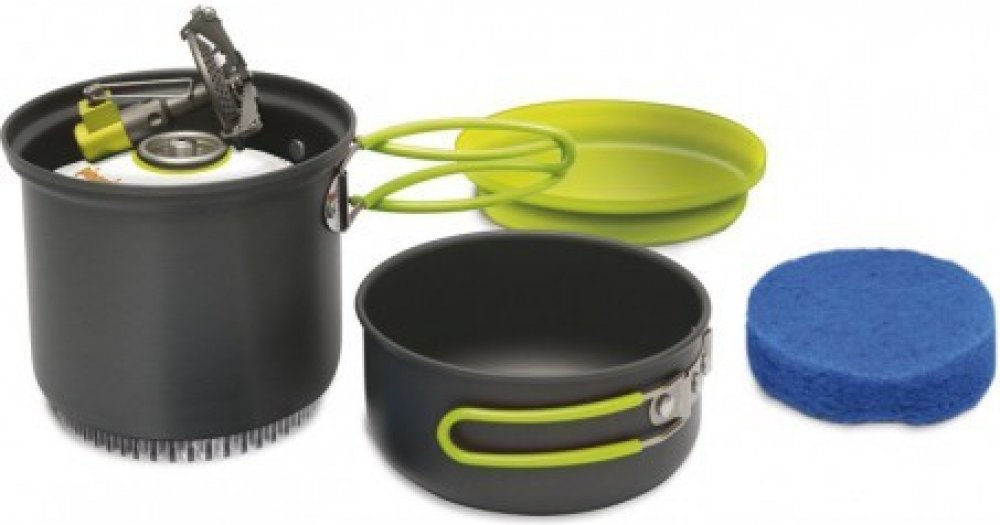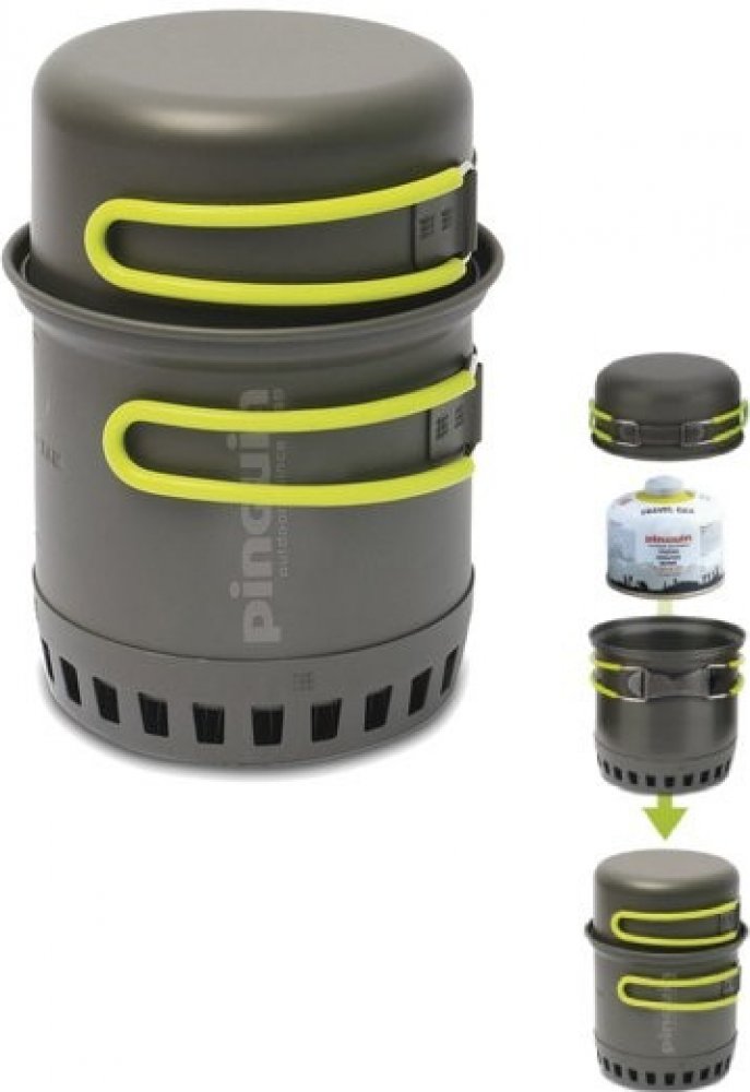 V hrnci lze pohodlně přenášet 230g kartuši, malý plynový vařič, utěrku a houbičku na nádobí. Toto příslušenství není součástí balení.