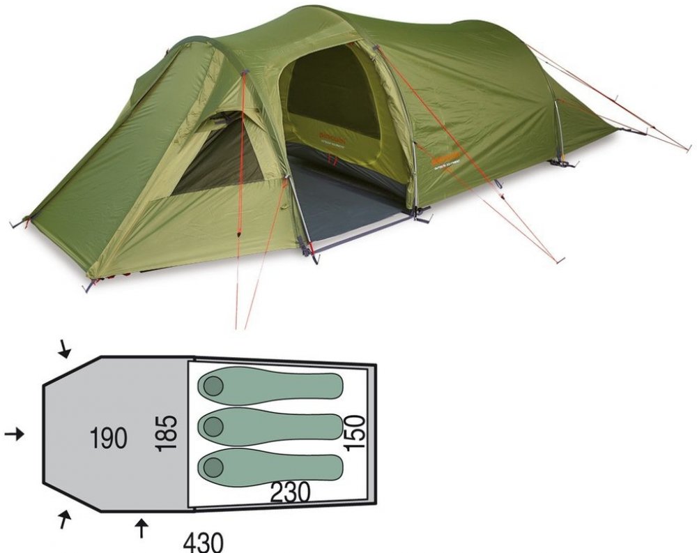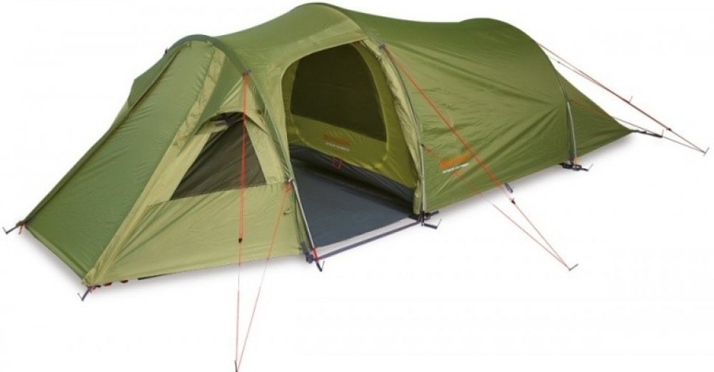Velmi prostorný stan tunelového typu, vhodný i do horších povětrnostních podmínek, díky svému nízkému profilu.