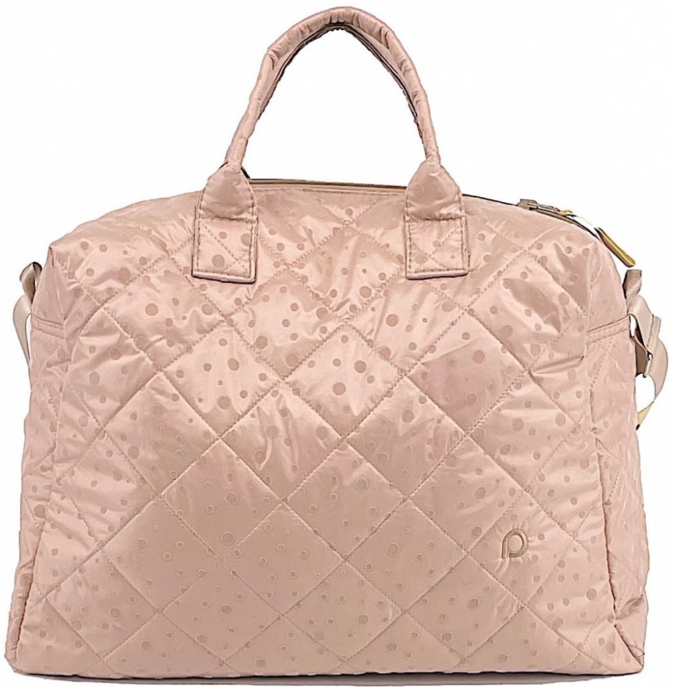 Voděodolná taška z polyesteru, vhodná na běžné nošení, sport nebo do práce. Má zip, 2 kapsy a očko na lahvičku. Možnost připnutí ke kočárku (karabinky nejsou součástí). Rozměry: 40 × 33 × 14 cm.