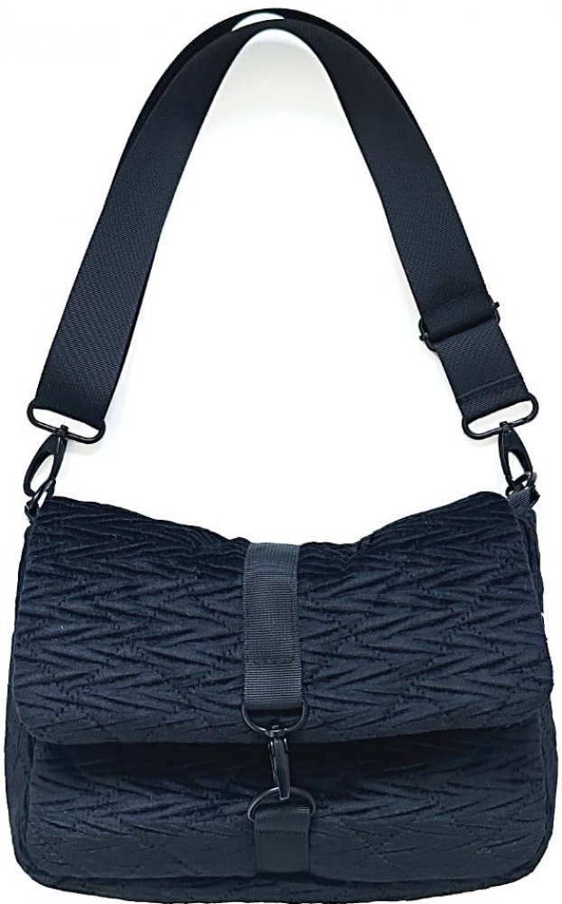 Elegantní kabelka pro moderní ženy. Praktická pro telefon, peněženku a klíče. Lze ji připevnit k kočárku pomocí karabinek, ideální pro maminky. Nastavitelný popruh. Rozměry: 20x24x5 cm.
