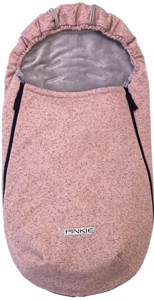 Moderní fusak české značky Pinkie vhodý pro teplejší období. Vnitřní část fusaku je vyrobena z bavlněného sametu svrchním materiálem je příjemný úplet protkaný stříbrnou nitkou. Spodní část je od vrchní zcela oddělitelná, takže jí můžete využít i samostatně jako vložku do kočárku. Fusak má stahování okolo hlavičky a připevnit ho můžete ke kočárku šňůrkami, nebude tak sjíždět.