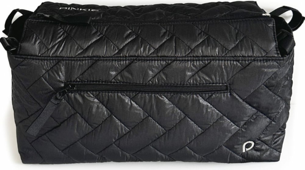 Objemný organizér vytvořený na kočárek Thule nebo jemu podobný. Jeho specifickému madlu jsme navrhli organizér, který na míru sedí a kopíruje tvar kočárku. Proto i po sklopení sedačky do polohy v leže, organizér nepřekáží, protože má zkosený tvar.