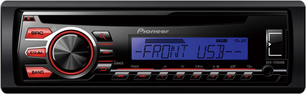 Autorádio s CD mechanikou Pioneer DEH-1700UBB umožní poslech hudebních CD disků a stanic pomocí digitálního FM/AM RDS tuneru. Přehrává hudbu z USB nebo AUX vstupu, kompatibilní s Android zařízeními, podpora formátu FLAC, červené podsvícení tlačítek, odnímatelný čelní panel.