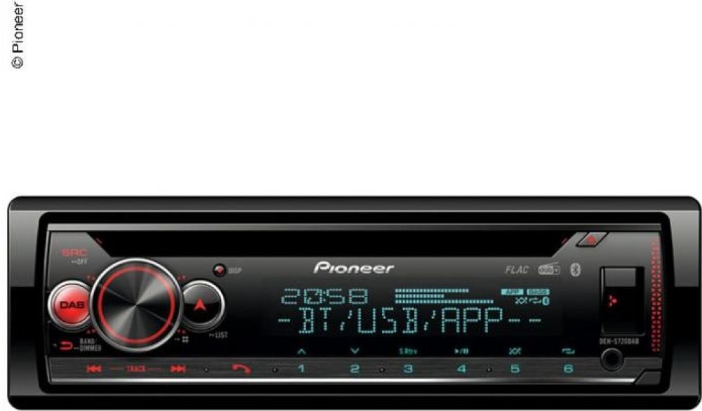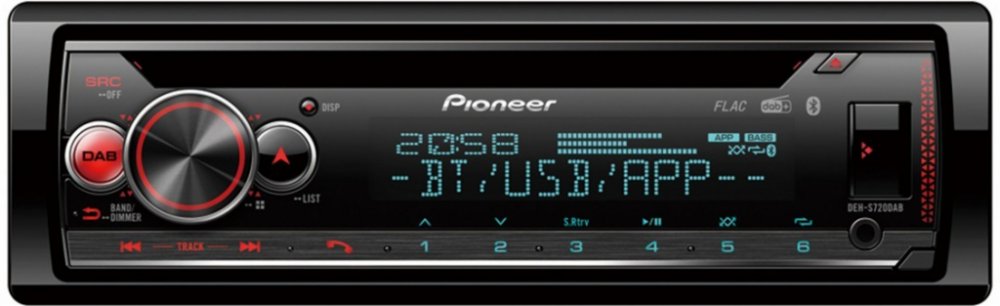 Autorádio Pioneer DEH-S720DAB nabízí špičkový poslech díky CD mechanice a modernímu DAB/DAB+ tuneru pro čistý digitální zvuk. Samozřejmostí je Bluetooth pro handsfree hovory i bezdrátové streamování hudby, stejně jako USBpřipojení a podpora Spotify. Pomocí aplikace Pioneer Smart Sync snadno rozšíříte funkce a ovládání přímo ze svého telefonu, přičemž autorádio je plně kompatibilní s iOS i Android....