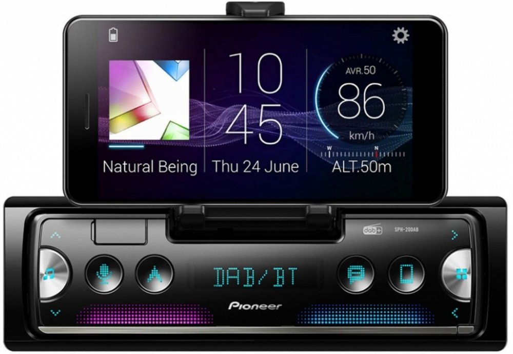 Digitální přijímač s integrovaným držákem smartphonu, který nabízí bezpečnější a snadnější přístup k aplikacím smartphonu prostřednictvím 4 vyhrazených tlačítek. Aplikace Pioneer Smart Sync umožňuje měnit nastavení barev a zvuků a využívat funkce smartphonu. Hlavní funkce zahrnují rozpoznávání hlasu pro bezpečnější řízení, digitální rádio DAB/DAB+ s krystalicky čistým zvukem, RDS, dopravní hlášení...