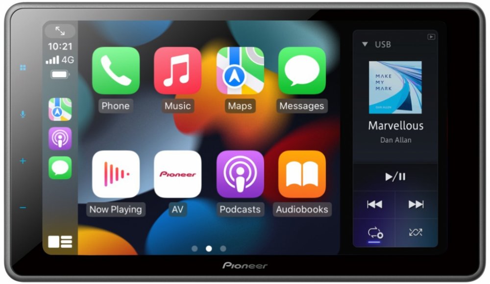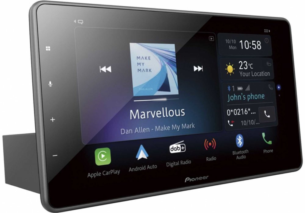 2-DIN Modulární multimediální jednotka s 9" WSVGA kapacitní vícedotykovou obrazovkou, bezdrátovým připojením pro AppleCarPlay a Android Auto. Pro použití určitých funkcí umožňuje "Pioneer Split Screen Mode" dynamickou změnu velikosti uživatelského rozhraní Apple CarPlay nebo Android Auto.
