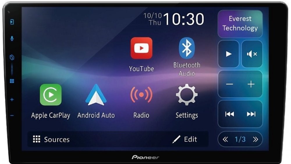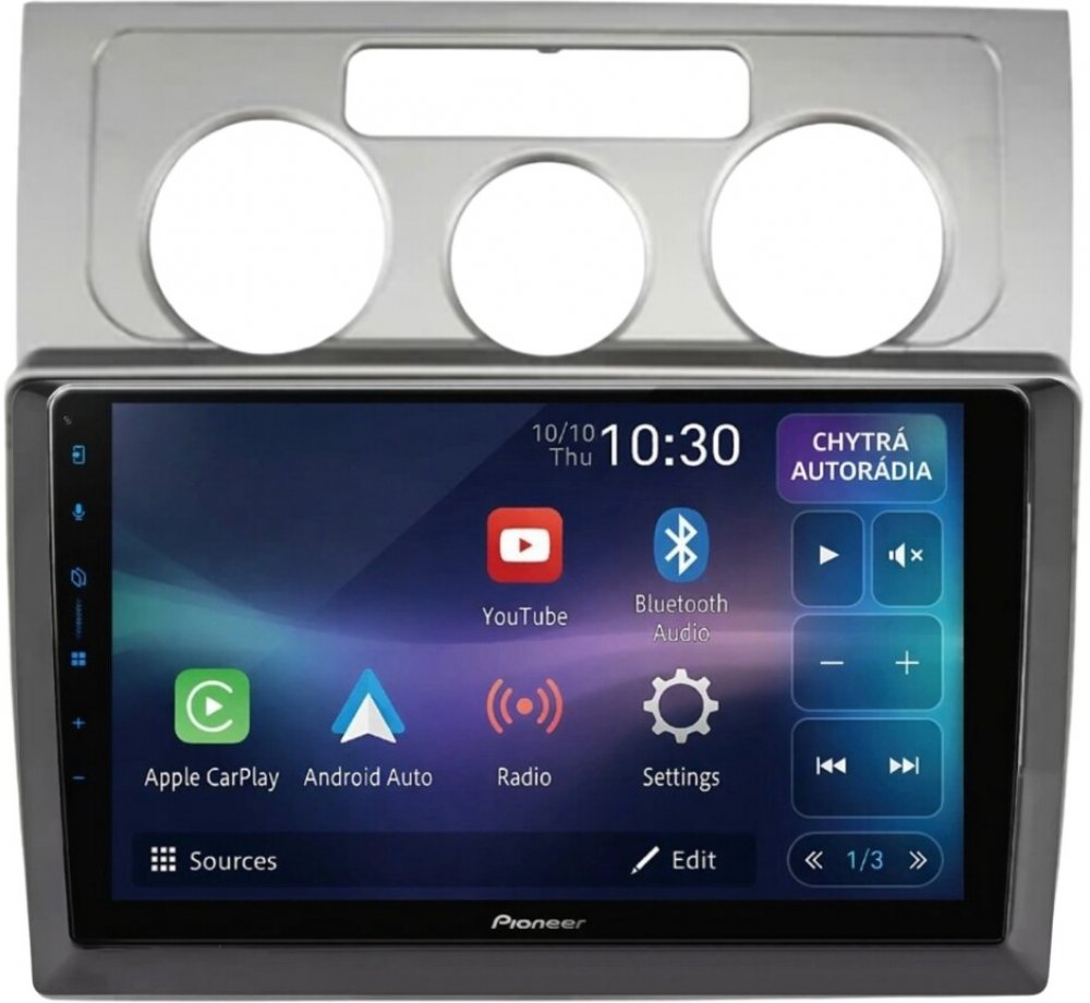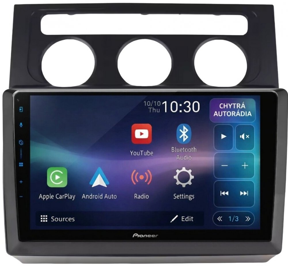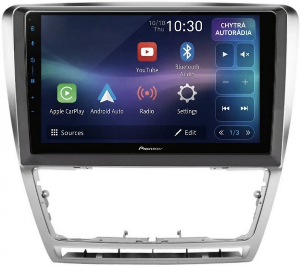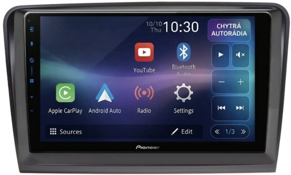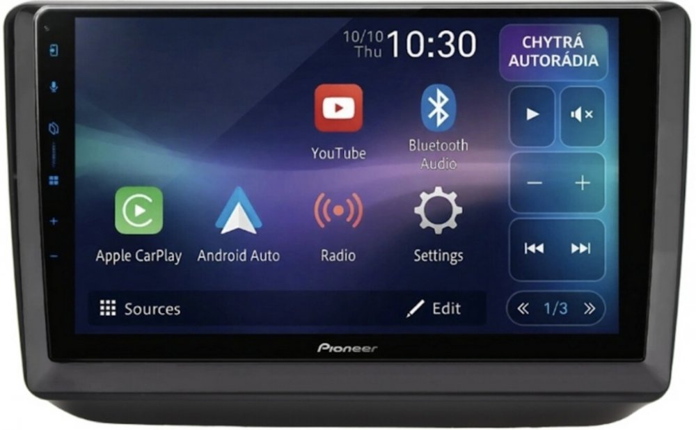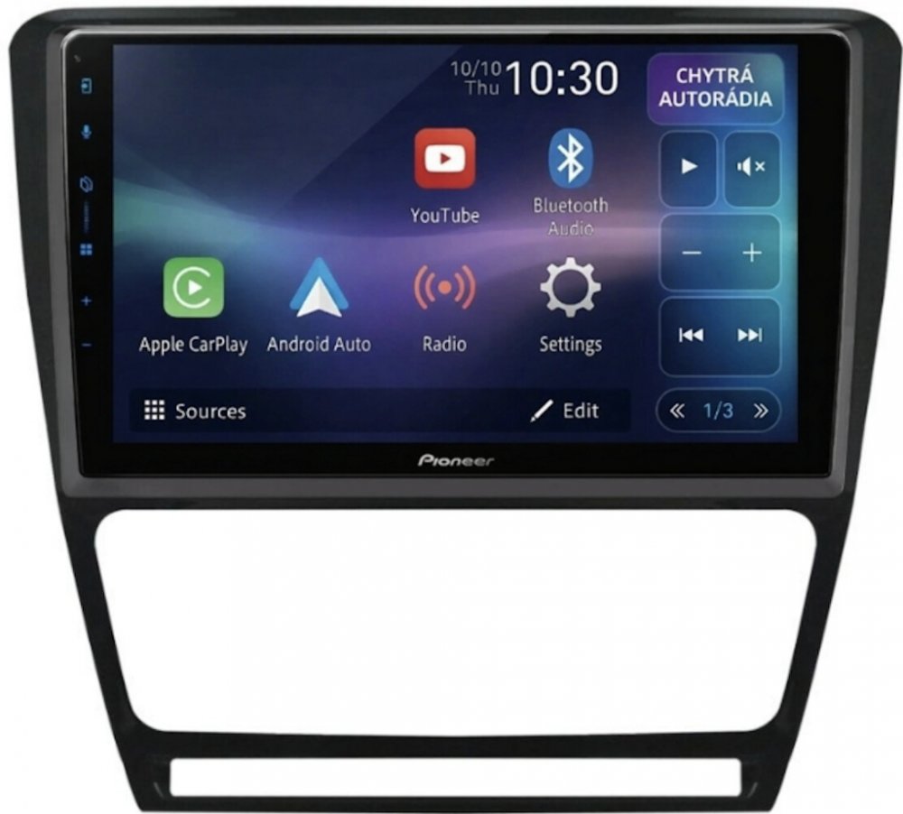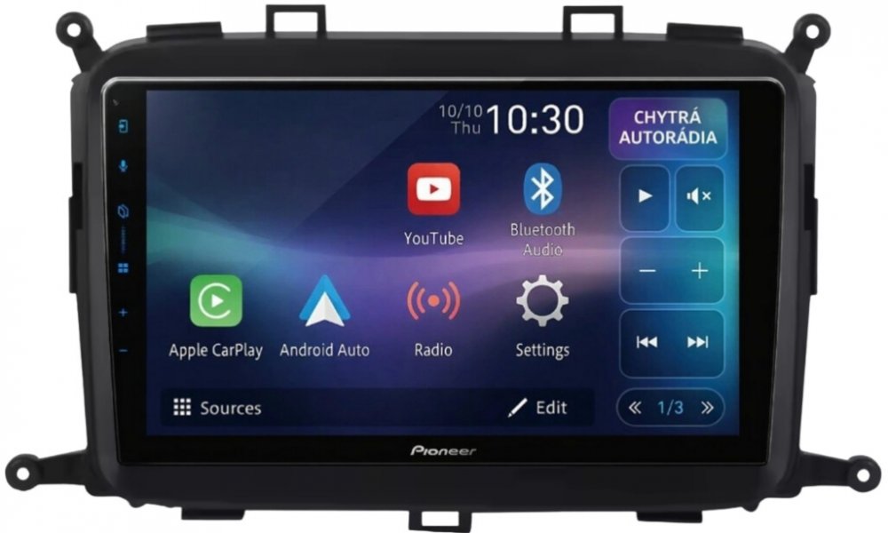 SPH-PF97BT univerzální AV jednotka s 9" kapacitním dotykovým monitorem vybavená funcí Car Play a Android Auto (drátové i bezdrátové).