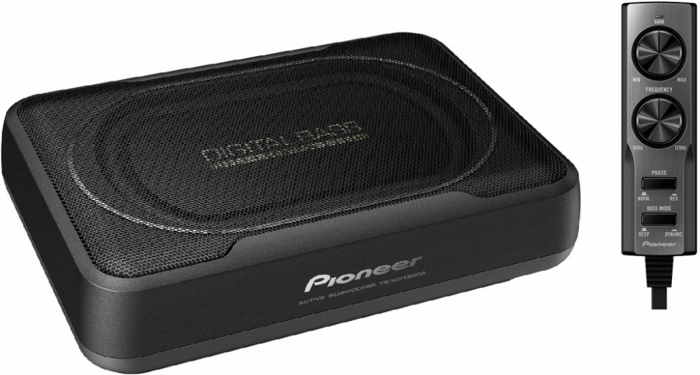 Subwoofer Pioneer TS-WX130DA - aktivní box vyniká svým vyjímečným designem a zvukem,který produkuje. Aktivní basový box Pioneer TS-WX130DA lze snadno zabudovat kdekoli v automobilu, díky jeho malým rozměrům. Díky masivní hliníkové ozvučnici modelu Pioneer TS-WX130DA s implementovaným chladičem je výsledkem vynikající výkon. Prostorově úsporný aktivní subwoofer s vestavěným zesilovačem třídy D s DIGITÁLNÍM BASSOVÝM OVLÁDÁNÍM pro basy ovládané DEEP a DYNAMIC. Snadná instalace díky nízkým nárokům na prostor. V balení je přiloženo kabelové dálkové ovládání pro snadné nastavení zisku, fáze a dělícího kmitočtu. Aktivní box lze zabudovat vertikálně i horizontálně. Materiál basového reproduktoru je IMPP kompozitový koš se stronciovými magnety. Jsou zde dvojité 2 Ohmové kmitací cívky zapojené do 1 Ohm nebo 4 Ohm. Pro snadnou motáž a kvalitu můžeme aktovní box Pioneer TS-WX130DA jen doporučit.