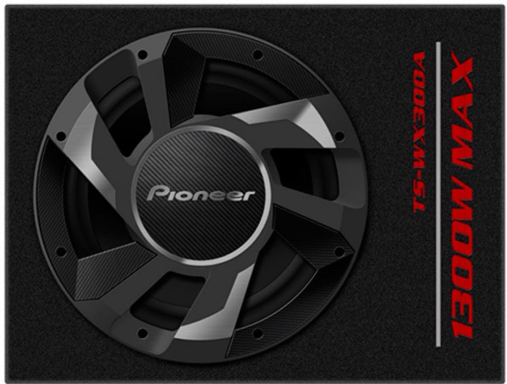 Aktivní subwoofer PIONEER TS-WX300A je značkový reprobox od výrobce PIONEER se stálým RMS výkonem 350 Wattů a impedancí Ohmů.