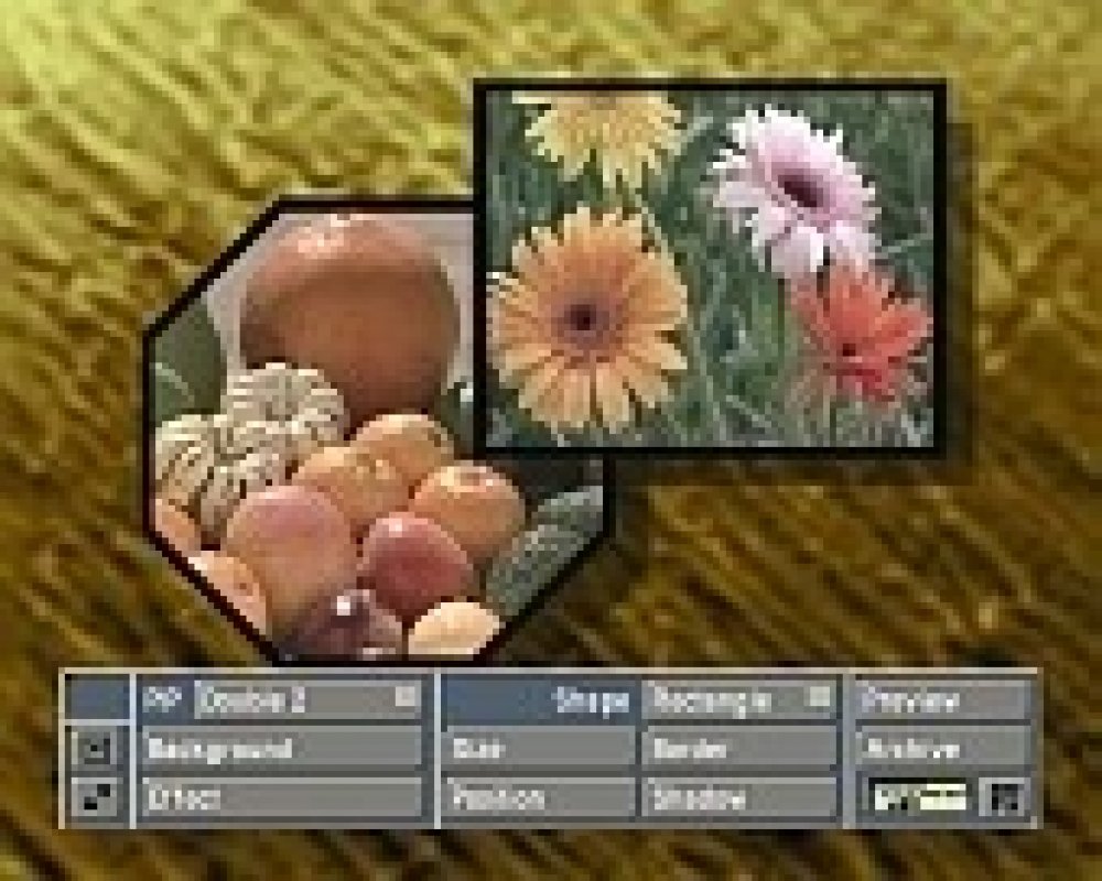You can place one scene on top of another scene. You can select different shapes, borders or shadows. Let your scene fly, zoom or fade in and out.
