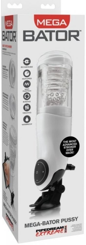 Umělá vagina Mega-Bator Pussy vás vyždíme do poslední kapky, a to doslova. Za realisticky vytvarovanou, úzkou a hladovou dírkou vás čeká rotační a přirážecí válec s měkkými masážními výstupky, který se o vašeho " kámoše" postará, aniž byste museli hnout prstem či rukou. Mega-Bator Pussy je pořádný "šoumen" a po zapnutí hraje všemi barvami (díky LED...