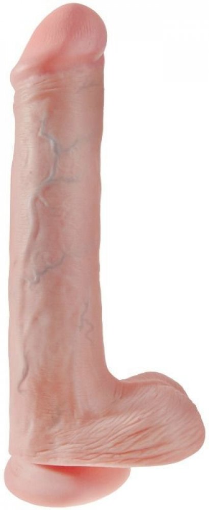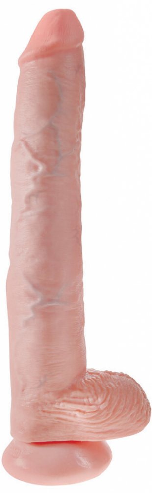 Obrovské XXL dildo v barvě kůže v detailním provedení penisu se žaludem, žilami a varlaty. S pevným vnitřkem a texturou podobnou pokožce působí téměř jako originál!