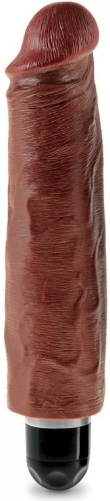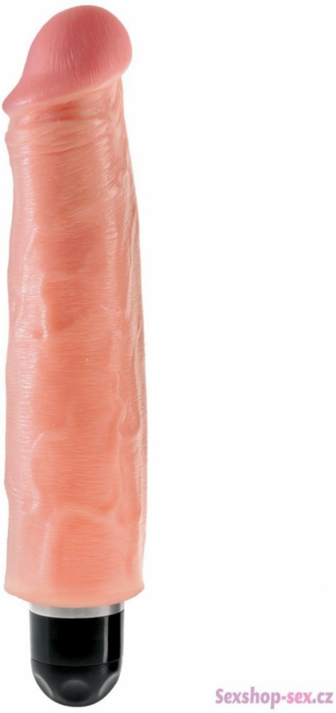 Hledáte vrnivou hračku, která vypadá jako živá? Realistický vibrátor King Cock Stiffy 7" je pro vás ten pravý. Má natolik realistické zpracování, že jej na první pohled téměř nerozeznáte od živého masíčka. Rozdíl je akorát v tom, že tento mazlík má trvalou a hezky pevnou erekci a vibrace. :) Vibrátor má věrohodnou tělovou barvu i všechny detaily - výrazný žalud se staženou předkožkou, jemné žilkování a dokonce i strukturu kůže. Vibrace jsou jednoduché, ale tiché. Jejich intenzitu můžete plynule měnit otočným ovladačem. Hračka je vyrobená z PVC, které je na dotek příjemně měkké. Má ohebnou špičku a pevné tělo, které při zavádění do dírky neuhne ani o píď. Vibrátor je voděodolný, takže si s ním užijete třeba i ve sprše nebo vaně. Lubrikujte gelem na vodní bázi. Čistěte teplou vodou s trochou jemného mýdla, případně speciální čisticí pěnou na erotické pomůcky. TIP: Velkou vibrační patronu můžete vyjmout a použít samostatně jako pevný plastový vibrátor.
