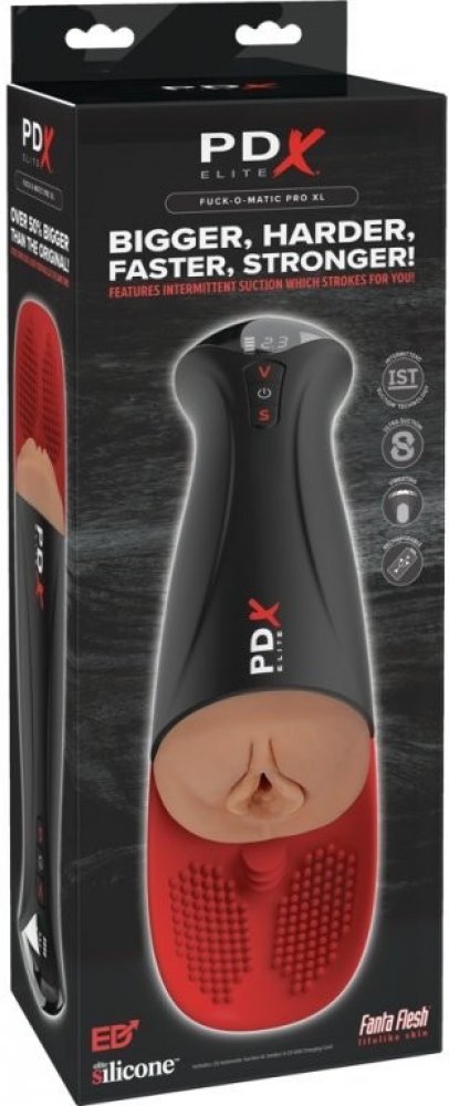 Toužíte po tom rozplynout se pod vlivem vzrušujícího sání? Vyberte si tento dokonalý masturbátor Fuck-O-Matic PRO XL a zažijte dokonalou bouři pocitů, o které se vám doposud ani nesnilo. Těšit se můžete na explozivní vibrace, které obklopí vaše varlata měkkými výstupky. Přizpůsobte si masturbátor svým osobním a aktuálním preferencím a vychutnejte si to s ním na maximum!