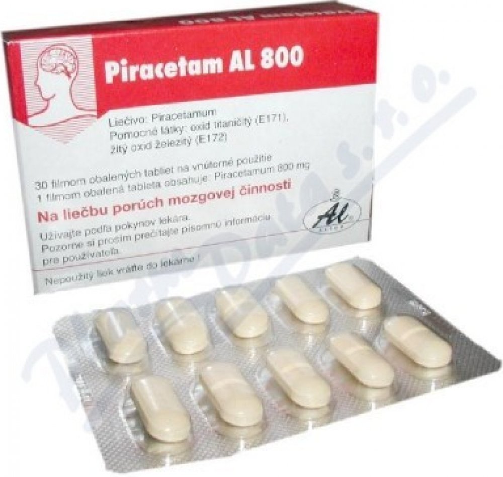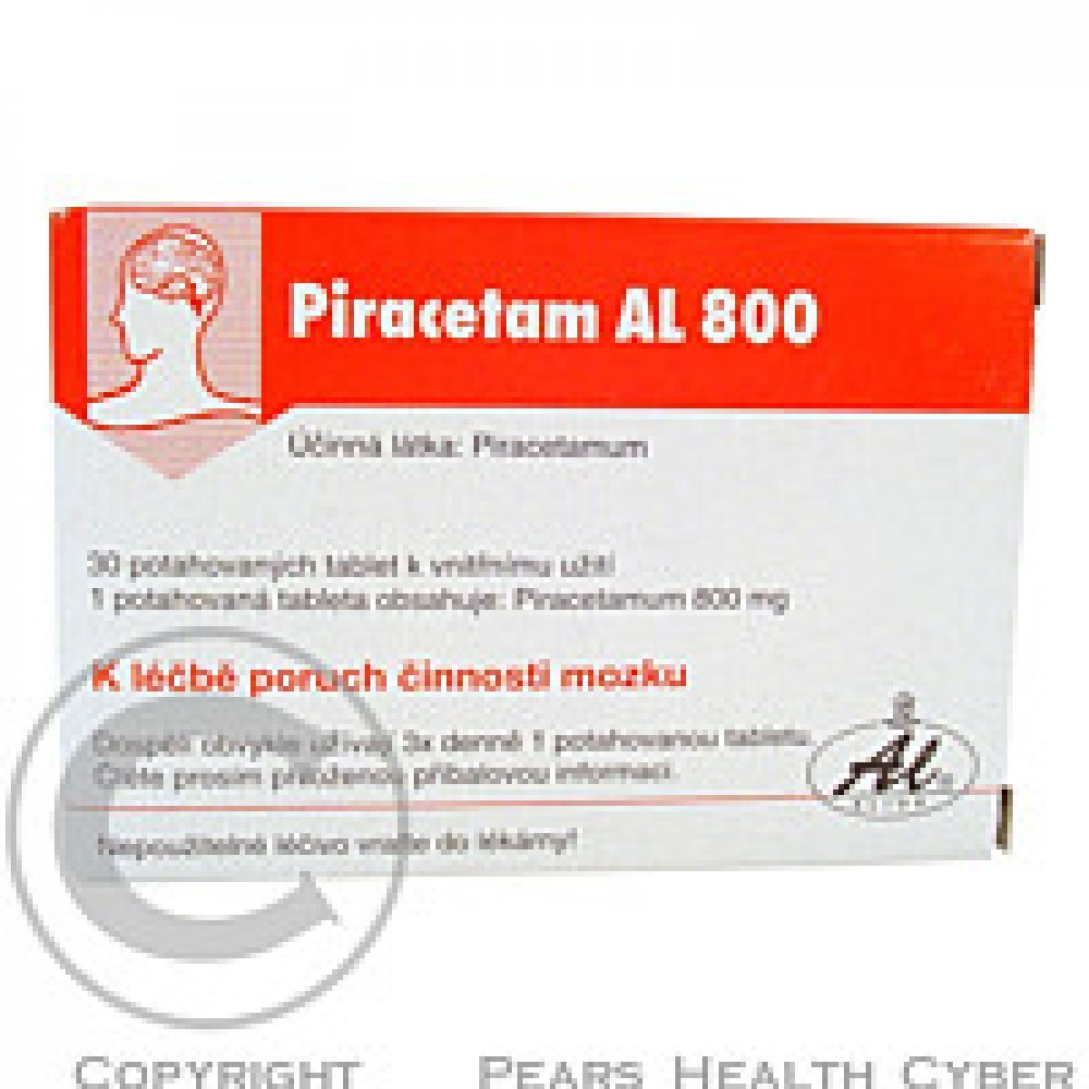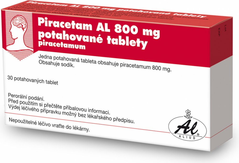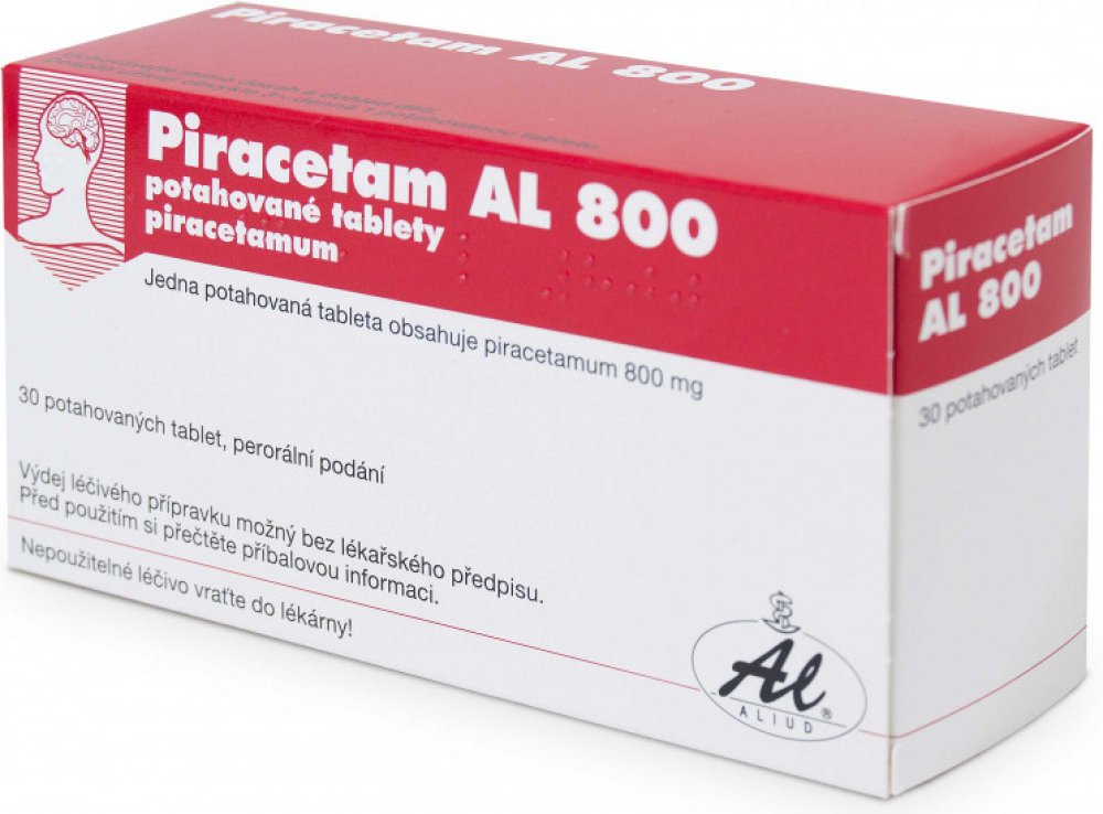 Piracetam AL 800 mg je volně prodejný lék. Daný přípravek obsahuje léčivou látku piracetam. Tato látka příznivě ovlivňuje funkci mozkových buněk v oblasti učení a paměti, bdělosti a vědomí. U pacientů s nedostatečnými funkcemi centrálního nervového systému zvyšuje krátkodobé i dlouhodobé podávání piracetamu bdělost a zlepšuje poznávací schopnosti. Při kortikální myoklonii (mimovolní záškuby jednotlivých svalů) se Piracetam AL užívá pouze na doporučení lékaře. Bez porady s lékařem se Piracetam AL používá u dospělých k léčbě příznaků psychoorganického syndromu. Za psychoorganický syndrom označujeme poruchu mozkové činnosti, která se projevuje např. ztrátou paměti, poruchou pozornosti a nedostatkem energie. Balení obsahuje 30 tablet.