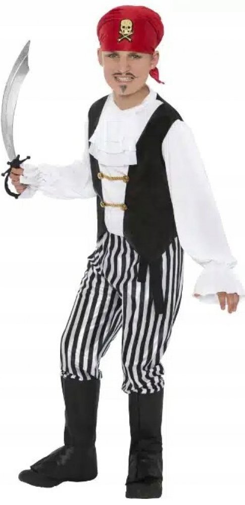 KOSTÝM PIRÁTA KORZÁR ČERNOBÍLÝ LOĎ PIRÁTI KOSTÝM KARNEVAL L 132-140
