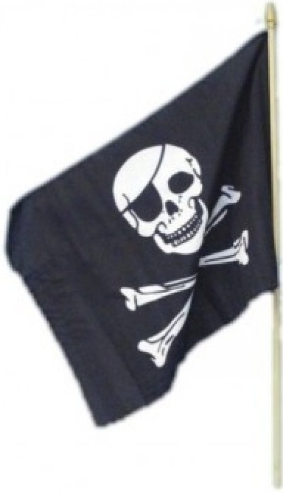 Pirátská vlajka na tyčce. Rozměry: 30x45cm