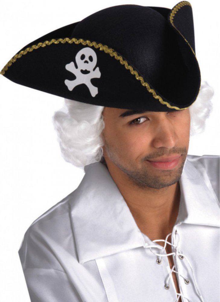 Černý pirátský klobouk s pirátským znakem Materiál: polyester Obvod hlavy: 58 cm