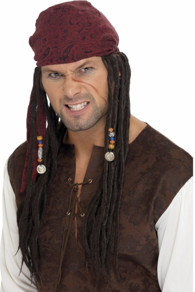 Jack Sparrow je legendární postava filmu Piráti z Karibiku. I vy se jím snadno můžete stát a překvapit okolí na pirátské nebo halloweenské party. Pirátský šátek s dredy a ozdobami je určený pro pořádné pirátské kapitány, kteří umí ovládat svůj koráb.