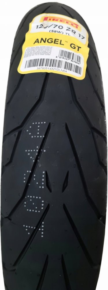 Motopneu Pirelli Angel GT Front RF 120/70 R17 W58. Ideální pneumatika pro cestovatele. Výborný pomocník na dlouhé výlety, s plně naloženým motocyklem. Nabízí velké bezpečí na mokré silnici, stabilitu a velký počet komfortně najetých kilometrů. Sportovně cestovní obutí od firmy Pirelli pro všechny majitele sportovně-cestovních motocyklů. Maximální přilnavost na mokrém povrchu či při nízkých teplotách bez kompromisu vůči použití na suchém povrchu. Evoluce pneu Angel ST, které rozšiřují svůj rozsah použití od sportovně cestovní až po cestování ve dvou při plné zátěži.