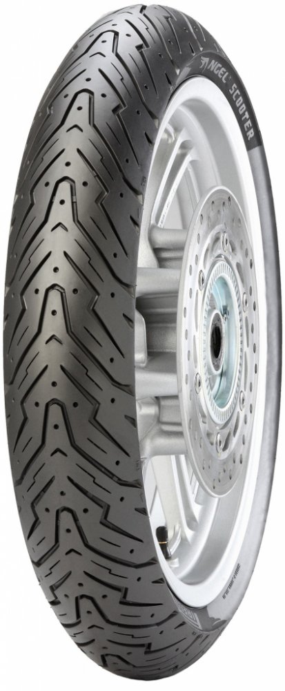 Motopneu Pirelli ANGEL SCOOTER 100/80 R14 S54. Pirelli představuje Angel Scooter. Tato pneumatika je anděl strážný městské mobility, protože poskytuje vynikající jízdní komfort, ovladatelnost a výkon na mokré vozovce, ideální charakteristiky pro každodenní použití v městské džungli. Mezi hlavní výhody a technické vlastnosti ANGEL ™ SCOOTER patří vynikající komfort díky kombinovanému působení na tuhou konstrukci a inovativní dezén, tato pneumatika se přizpůsobí každému povrchu vozovky. S ANGEL ™ SCOOTER, bude každý uživatel skútru moci vychutnat hladší, bezpečnější a pohodlnější jízdu. Revoluční tlumení nárazů otvory uspořádanými podél běhounu přispívají ke zvýšení flexibility pneumatiky pod běhounem, a to nejen umožňuje tlumit vibrace a nárazy na cestě, ale také zvyšuje povrch pneumatik v kontaktu s asfaltem při brzdění.