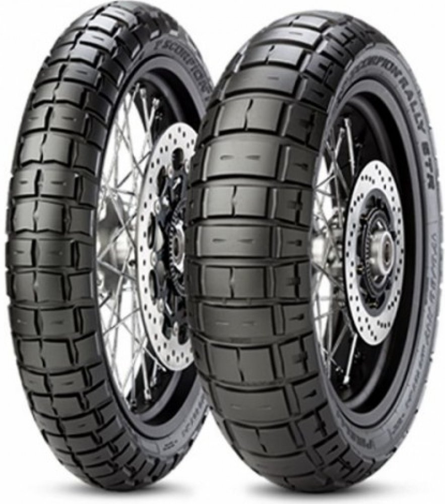 Motopneu Pirelli SCORPION RALLY STR 130/80 R17 V65. Pirelli SCORPION™ RALLY STR je nová enduro pneumatika pro dobrodružství bez omezení. Silniční a on/off cestovní výbava pro jezdce, kteří hledají hrubší pneumatiku, ale požadují přilnavost, bezpečnost na mokru a pohodlí. Technologické inovace zajišťují přilnavost v terénu, stabilitu při vysokých rychlostech, obratnost na silnici a přilnavost za všech jízdních podmínek. Nová směs s vysokým obsahem oxidu křemičitého nabízí zvýšenou přilnavost na suchém i mokrém povrchu, stabilitu a vynikající odolnost proti oděru. Větší šířka a délka kontury pneumatiky vytváří větší kontaktní plochu pro lepší stabilitu. Bloky jsou delší a širší a podélná vzdálenost mezi jednotlivými řadami hrotů byla zmenšena, aby se zvětšila kontaktní plocha, aniž by byla ohrožena trakce v terénu.