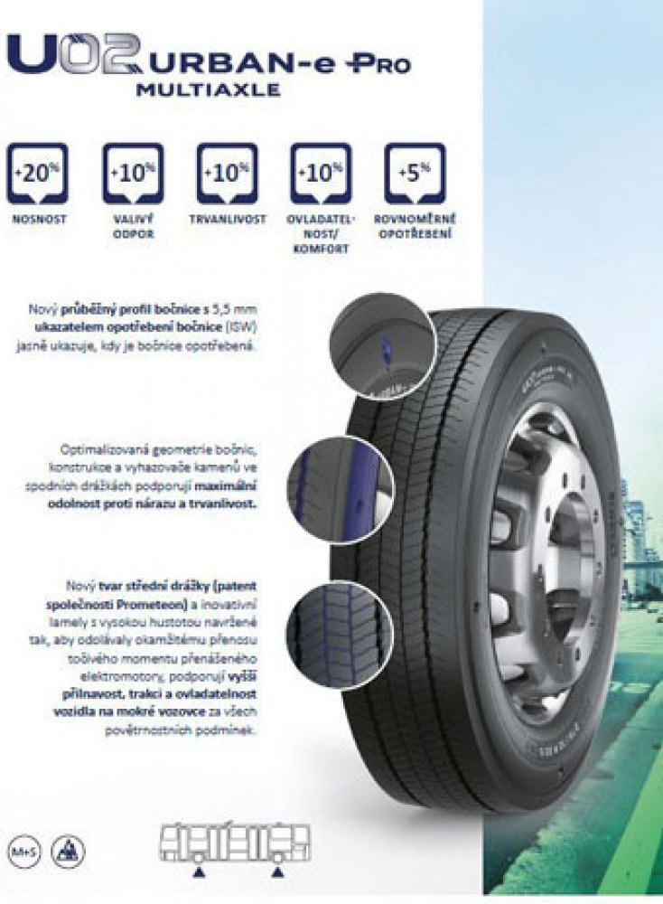Nový průběžný profil bočnice s 5;5 mmukazatelem opotřebení bočnice (ISW)jasně ukazuje; kdy je bočnice opotřebená.Optimalizovaná geometrie bočnic;konstrukce a vyhazovače kamenů vespodních drážkách podporují maximálníodolnost proti nárazu a trvanlivost.Nový tvar střední drážky (patentspolečnosti Prometeon) a inovativnílamely s vysokou hustotou navrženétak; aby odolávaly okamžitému přenosutočivého mo...