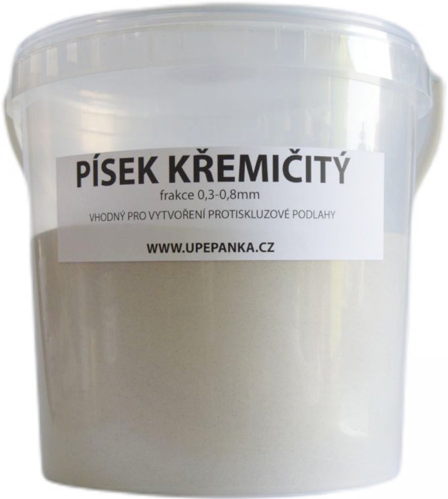 Písek křemičitý ve frakci 0,3-0,8mm vhodný na posyp penetrační vrstvy pro vytvoření protiskluzného povrchu na betonové podlaze pro epoxidové nátěry. V nabídce 10kg kbelík a 50kg pytel.