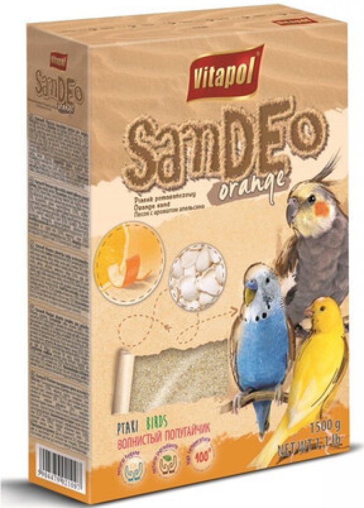 Písek;Vitapol;pomerančový je určen pro udržení čisté klece vašeho domácího mazlíčka. Složení je obohaceno o mleté mušle, které jsou zdrojem makro a mikro částic nezbytných pro správný vývoj organismu. Použití: pro udržení správných podmínek v kleci j
