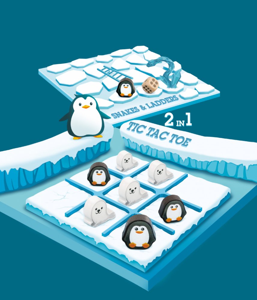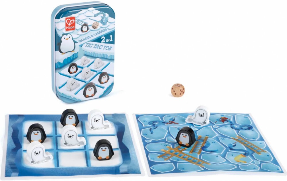 Tento produkt je perfektní kombinací dvou oblíbených stolních her. Na jedné straně desky se hrají piškvorky – hra, která rozvíjí logické myšlení, strategii a schopnost předvídat tahy soupeře. Na druhé straně čeká klasická hra Had a žebříky, kde hráči pomocí kostky stoupají po žebřících a kloužou po hadech dolů – skvělá zábava pro celou rodinu.