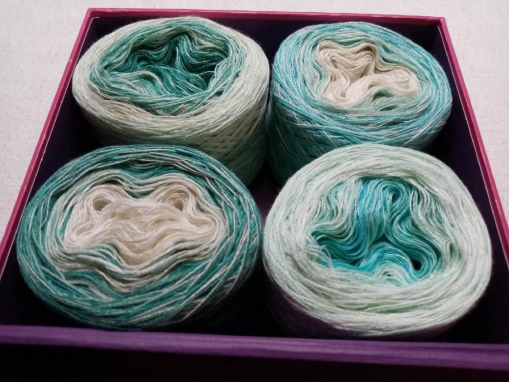 Jsou to 4 malá duhová klubíčka , které vzájemně navazují a můžete si je poskládat podle vlastní fantazie.