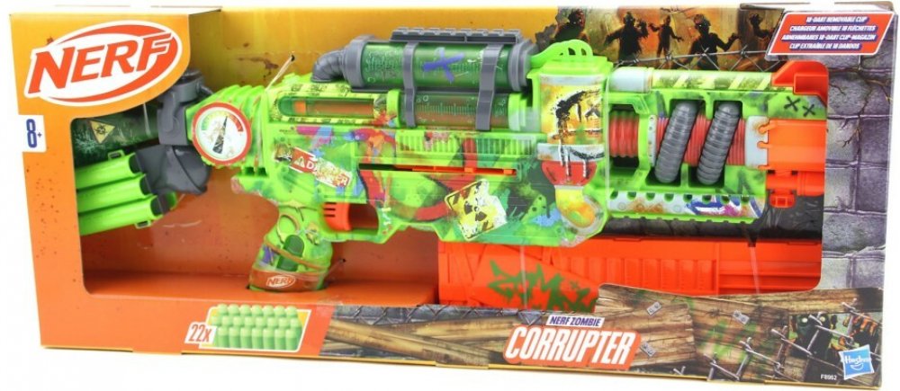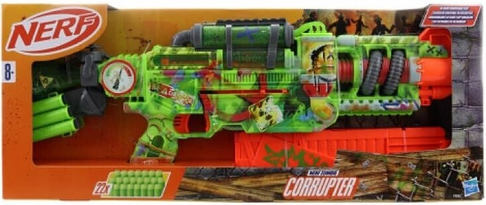 Blaster Nerf Zombie Corrupter vyniká unikátním designem, který kombinuje vzhled vědeckého laboratorního vybavení s poutavým graffiti po obou stranách. Tento model imituje výstroj vyrobenou samotnými přeživšími v boji proti zombie. Je vybaven plynulým mechanismem s otočným závěrem a odnímatelným zásobníkem s vysokou kapacitou na 18 šipek. Pro maximální připravenost v akci disponuje blaster integrovaným úložným prostorem na dalších 6 šipek přímo v konstrukci a dvěma taktickými lištami, které umožňují osazení dalším příslušenstvím.