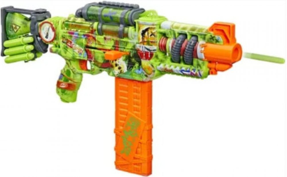Hlavní vlastnosti Originální zombie design s graffiti motivy a vizuálem laboratorního vybavení. Mechanismus s otočným závěrem pro spolehlivé nabíjení a střelbu. Odnímatelný zásobník s kapacitou na 18 šipek pro dlouhou výdrž v bitvě. Integrovaný úložný prostor pro 6 náhradních šipek umístěný na těle blasteru. Dvě taktické lišty pro individuální upgrade a zvýšení funkčnosti. Robustní konstrukce ideální pro tematické zombie hry a venkovní akce. Parametry Kapacita zásobníku: 18 šipek Úložný prostor: 6 šipek Doporučený věk: 8+ Série: Nerf Zombie Materiál: Plast