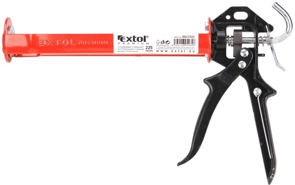 zesílená rukojeťkovový trn na odstranění zaschlého tmelupro kartuše 225 mm/310mldávkování 23 cyklůExtol Premium je typickým představitelem třídy Master. Na rozdíl od hobby nářadí, jehož jediným parametrem je často cena, konstruktéři nářadí Extol Premium kladou důraz na kvalitu použitých materiálů a technologií, zpracování, design, parametry a ergonomii.Tato kategorie je zárukou, že za dostupnou cenu kupujete kvalitní výrobek vyrobený podle nejnovějších technologií a naplňující v mnoha směrech ta nejvyšší očekávání. Zároveň přináší řadu řešení a patentů, které byly dosud výsadou profesionálních značek.