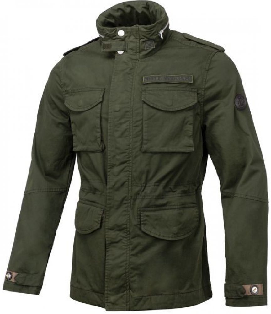 Bunda z nejnovější kolekce PIT BULL WEST COAST - MONTEREY Klasický model typu americké bundy M-65. Bunda je vyrobena z vysoce kvalitní bavlněné tkaniny s přídavkem elastického vlákna, s koženými detaily. V přední části jsou čtyři praktické kapsy na cvoky a praktická vnitřní kapsa na zip. Na přední části nášivka PITBULL WEST COAST připevněná pomocí suchého zipu a kruhová 3D na levém rukávu. Rukávy stahovatelné pomocí popruhu se cvokem. V límci je dešti odolná kapuce. Uvnitř bundy nastavitelný gumový pas. Materiálové složení: 97% bavlna/3% spandex.