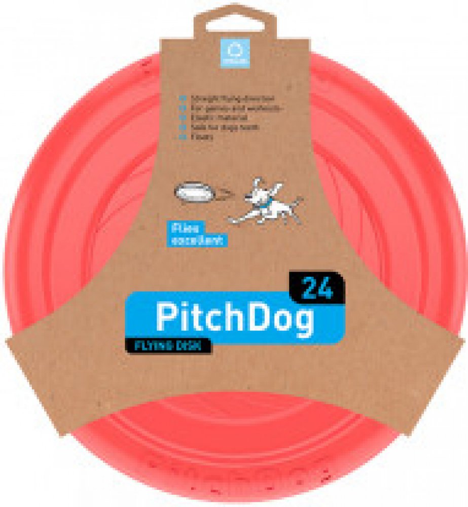 Pitch dog talíř je vyroben z unikátního patentovaného materiálu (kompozitní polymer). Psí zuby jemně vejdou dovnitř létajícího disku, ale nepoškodí zuby a dásně. Létající talíř Pitch dog se nedeformuje a neztrácí své základní vlastnosti po dlouhou dobu. Můžete ho ohýbat.