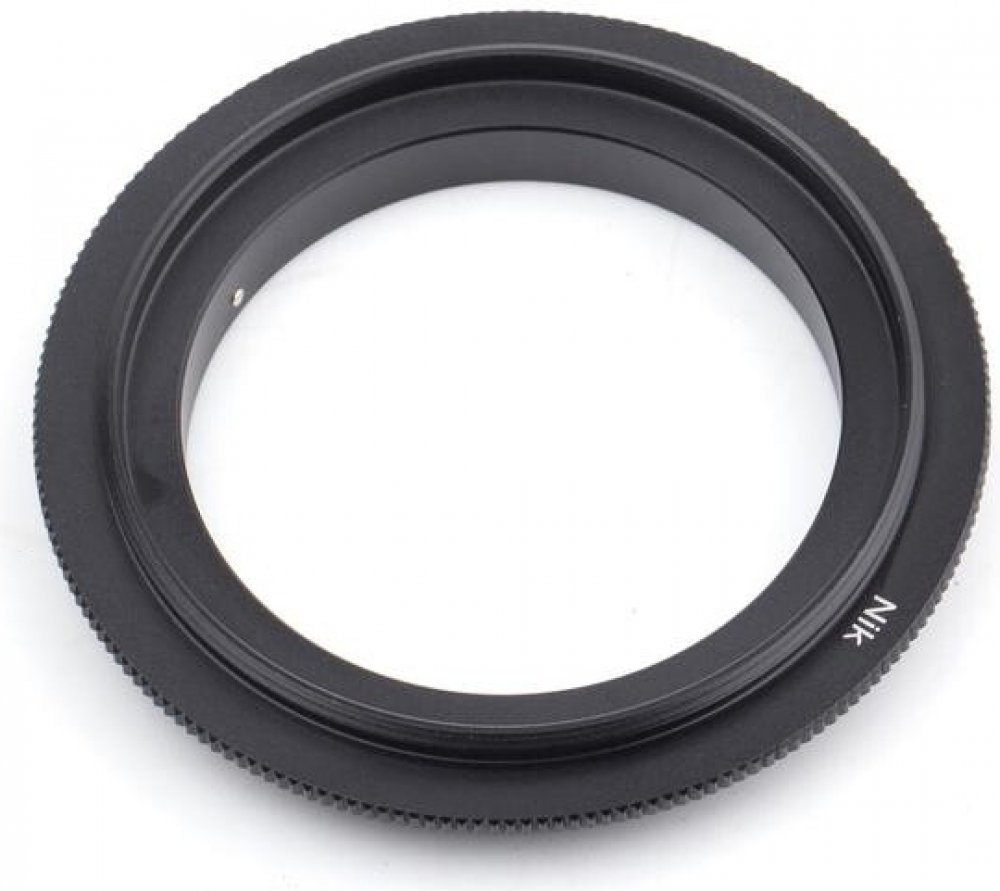 Makro reverzní kroužek od firmy Pixco pro fotoaparáty s bajonetem Nikon F a objektivy se závitem 55 mm.Kroužek složí pro použití normálního objektivu pro makrofotografii, kdy je objektiv na fotoaparát nasazen obráceně. Využívá se toho, že objektiv v běžné poloze obraz na senzor změnšuje a v obrácené poloze ho naopak zvětšuje.