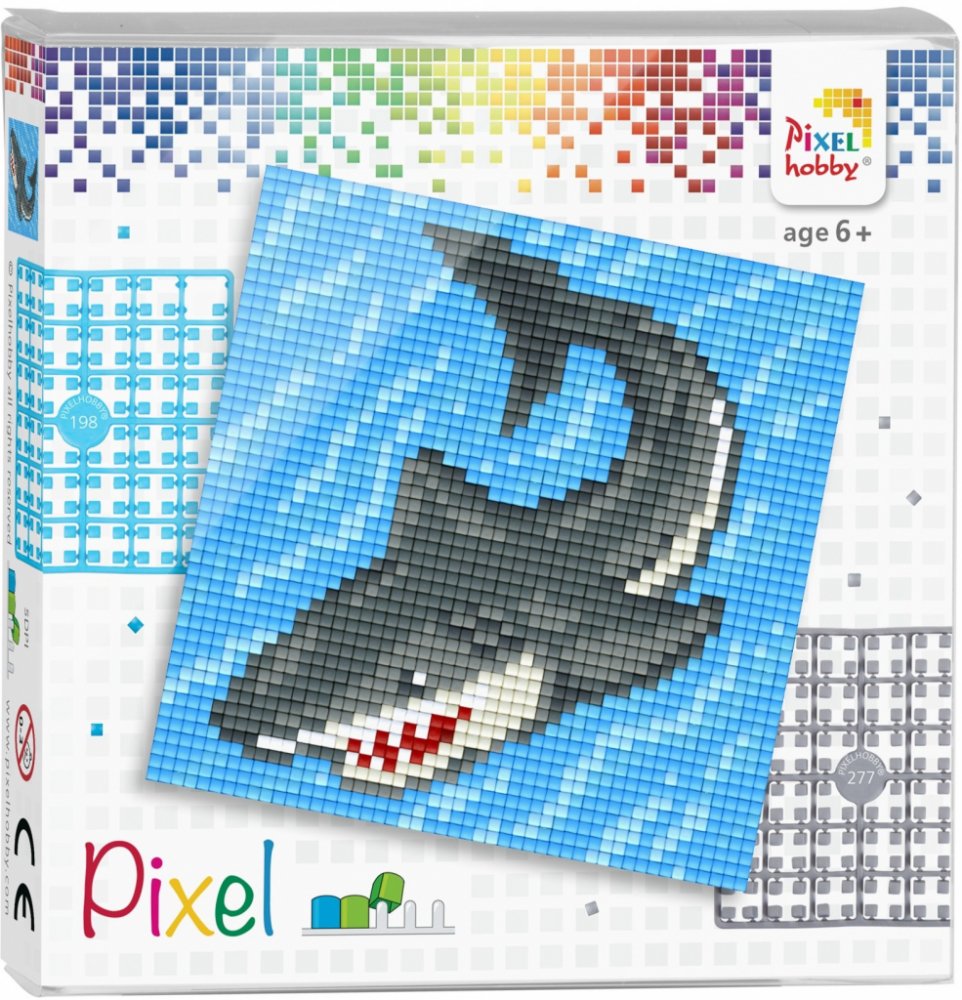 Pixelujte čtyři malé čtvercové základní desky (6x6 cm) a vytvořte obrázek. Jedná se o sofistikovanější sada s obrázkem tvořeným 4 čtvercovými základními deskami. Výsledkem je obrázek o velikosti 12 x 12 cm a 2304 pixelech. Čtyři základní desky pixelů jsou vzájemně spojeny pomocí spojek desek.